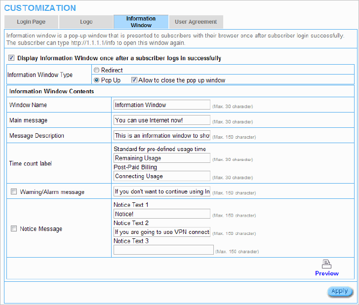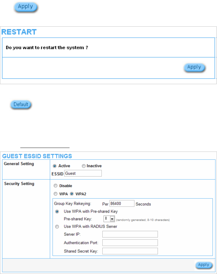 screen. Clicking the apply button restart the GuestWiFi, with all of your settings remaining intact.