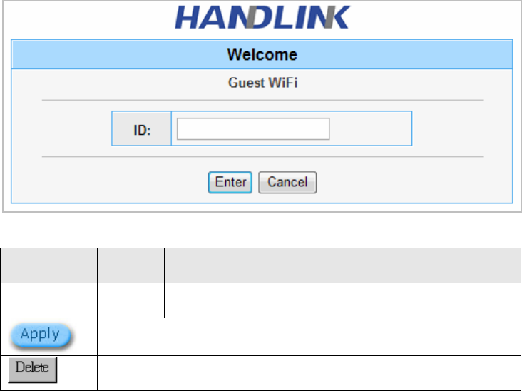steps: press the key, find guest SSID, enter ID & WPA/WPA2 Per-Shared Key and Login to Internet;
