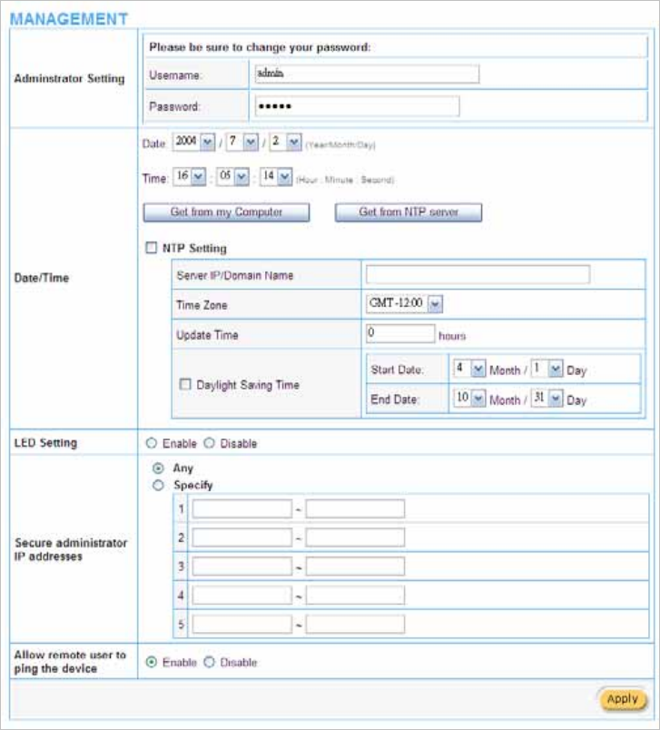 WAP-001 provides Two Ethernet ports, a 2.4GHz 802.11b/g/n wireless access point. The WAP-001