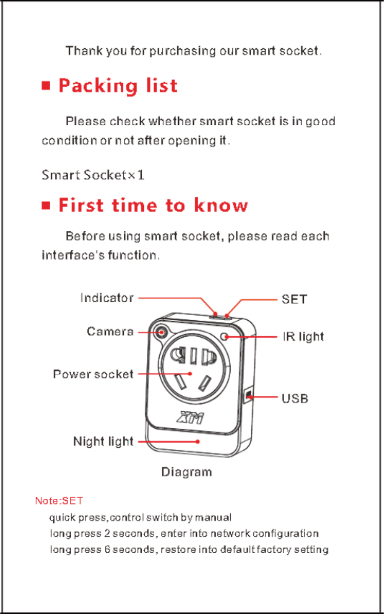 HangZhou XiongMai Technology XM-JPK1S Smart Socket User Manual User Maunalx