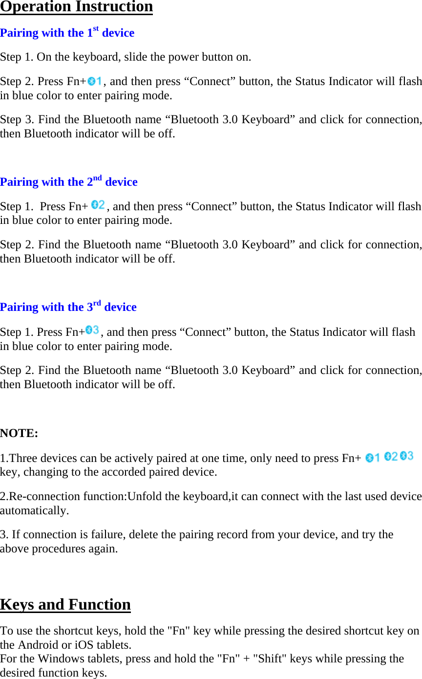 Hangshi Electronic Technology HB022S Bluetooth Keyboard User Manual