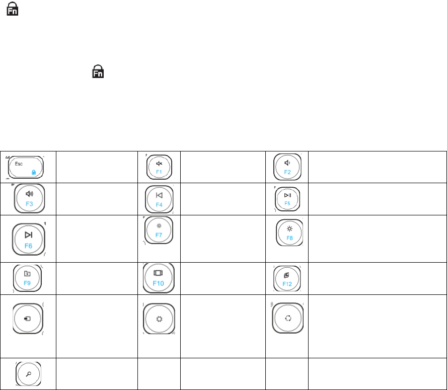 1. Fn Lock Indicator : Blue right ,F1-F12 will be got directly after pressing Fn+Fn Lock together