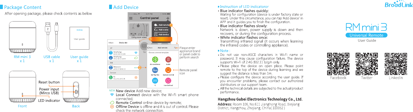 Hangzhou Gubei Electronics Technology Co.,Ltd Universal Remote 02 RM mini 3 3en