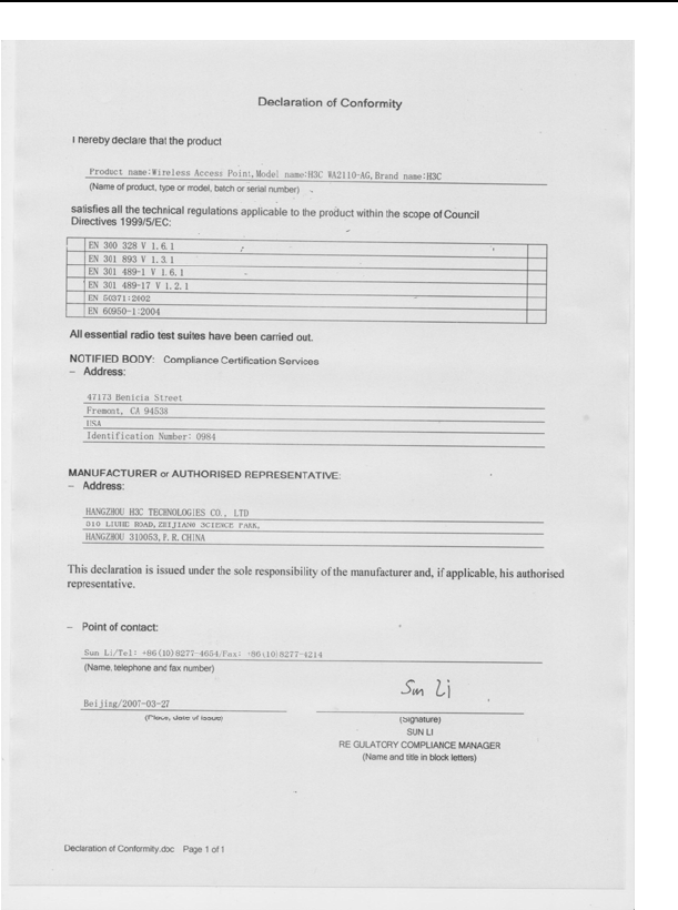 Hangzhou H3C Technologies H3CEWTO235A22W WIRELESS LAN ACCESS POINT User Manual