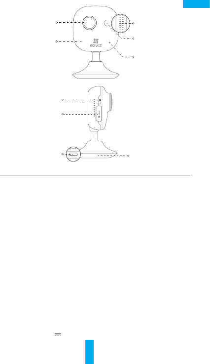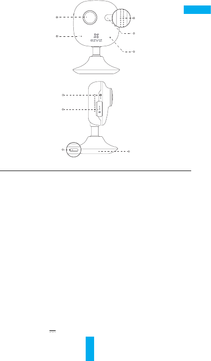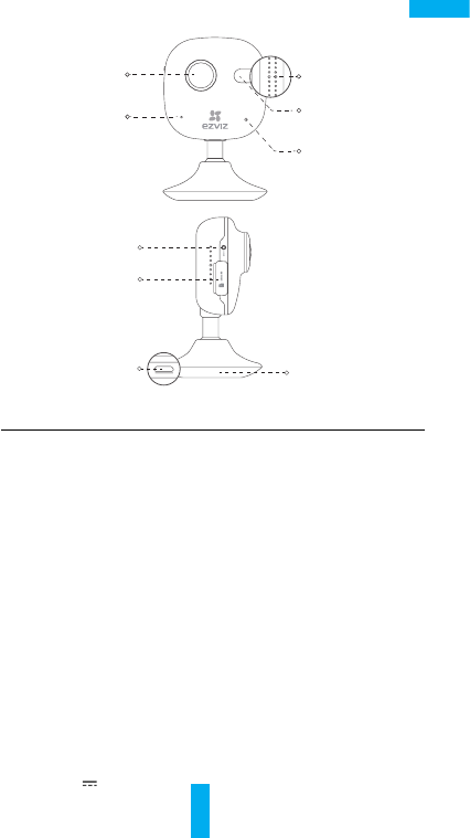 LED Indicator •Blinking Red and Blue: The camera is on; you can configure the