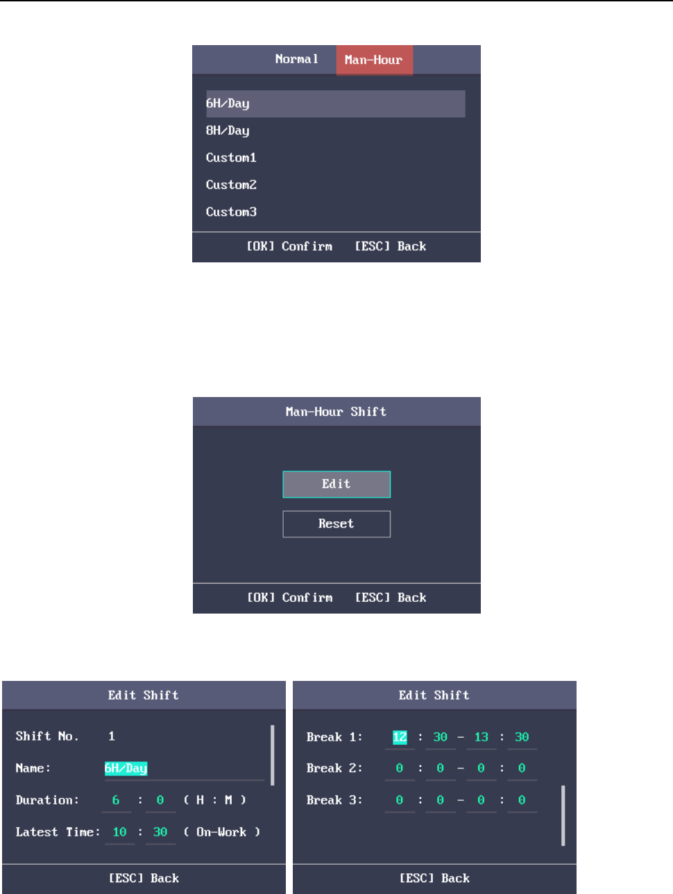 Man-Hour Shift Table: Set the Man-Hour Shift working duration. If set the Latest