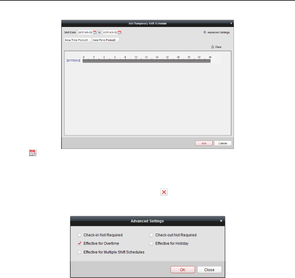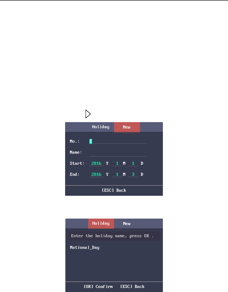For example: If set Period 1 to 9:00 (Start) and 17:00 (End), it is effective for the user to take