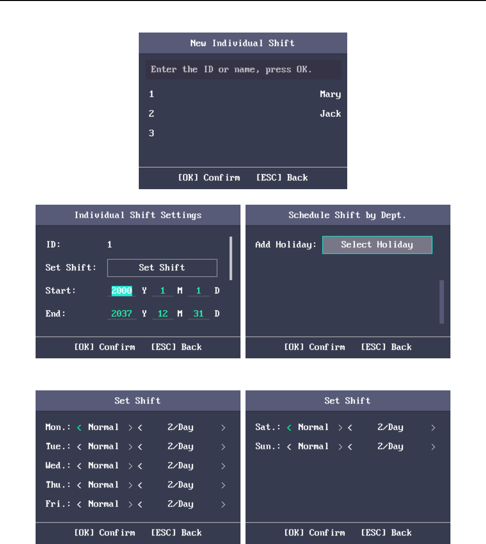 Normal Shift Table: Up to 4 periods can be configured in normal shift configuration. You are
