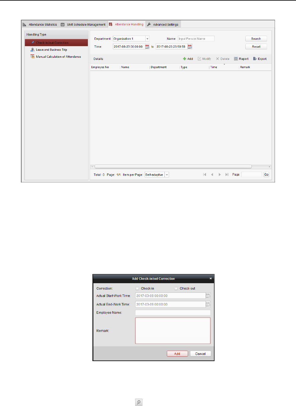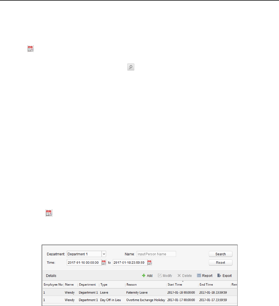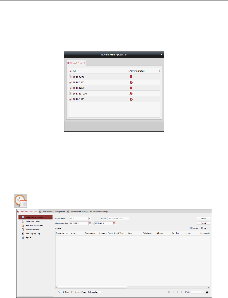 Attendance Summary Table: Enter the start time and the end time to calculate the user attendance
