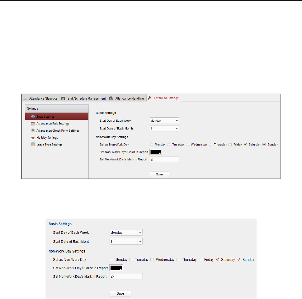 table. You are able to set the shift information and the holiday (No attendance recorded during the