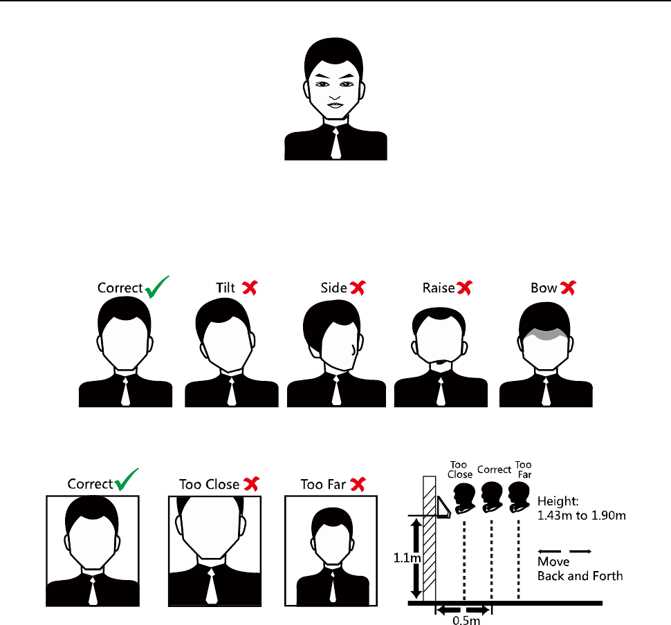 Do not wear hat, sunglasses, or other accessories that can affect the facial recognition function.