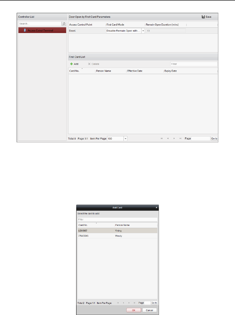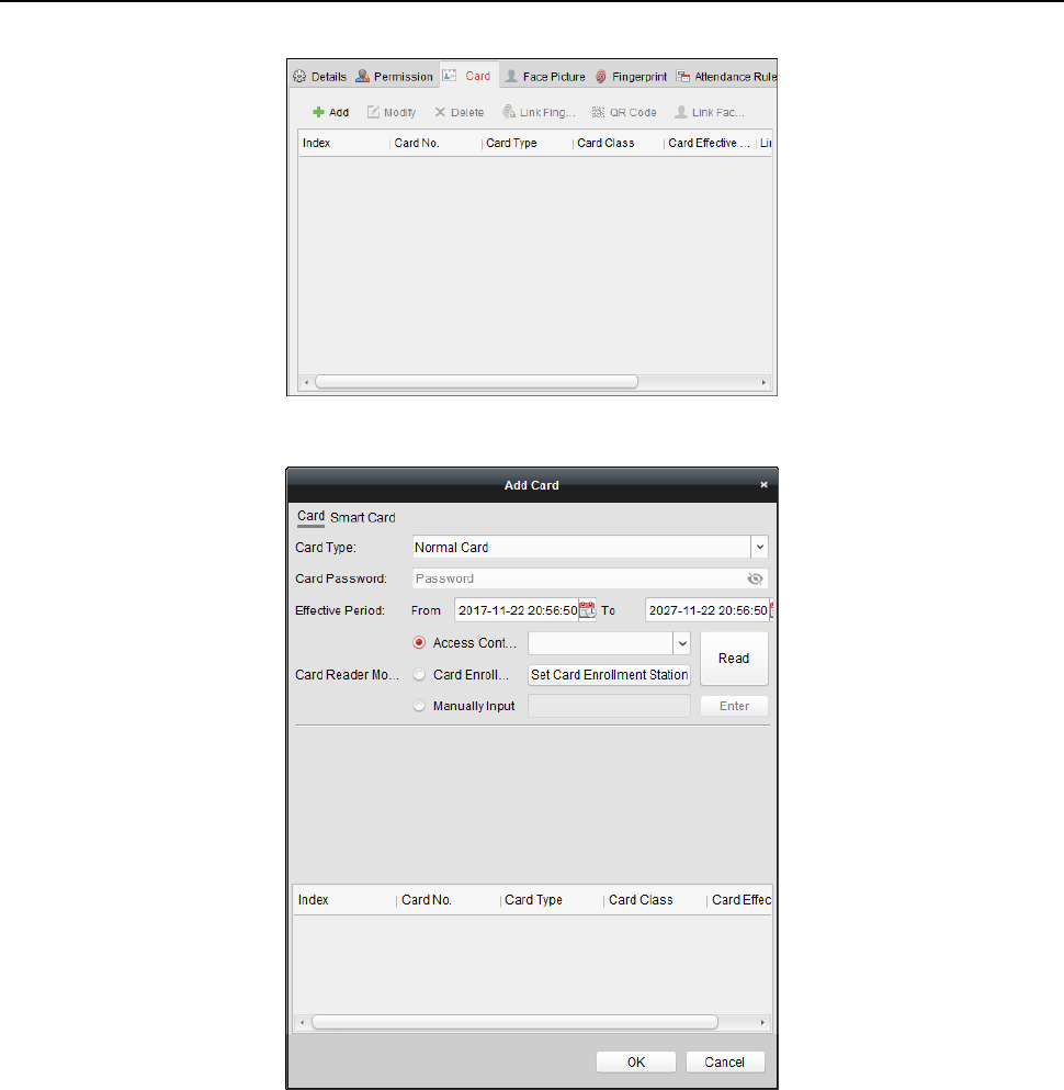 swiping time, card reader authentication mode and card No.