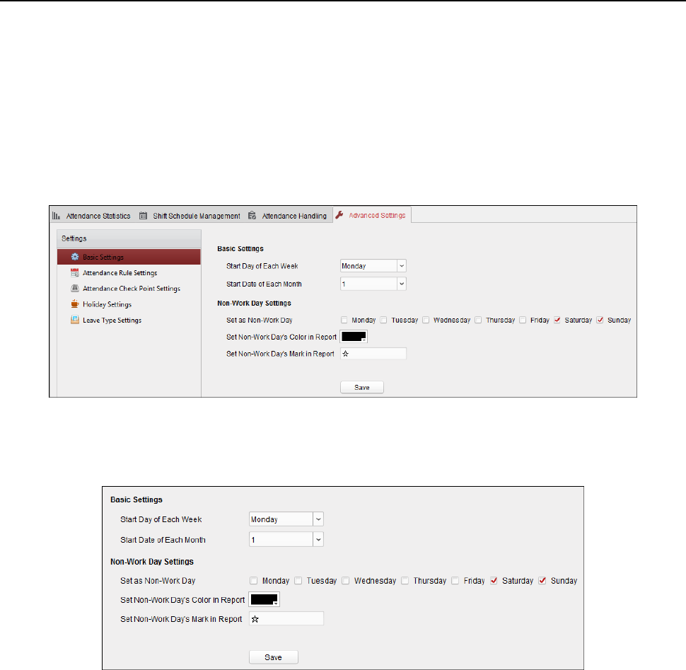attendance report. For detailed operations, refer to Generating Start/End-Work Time Report