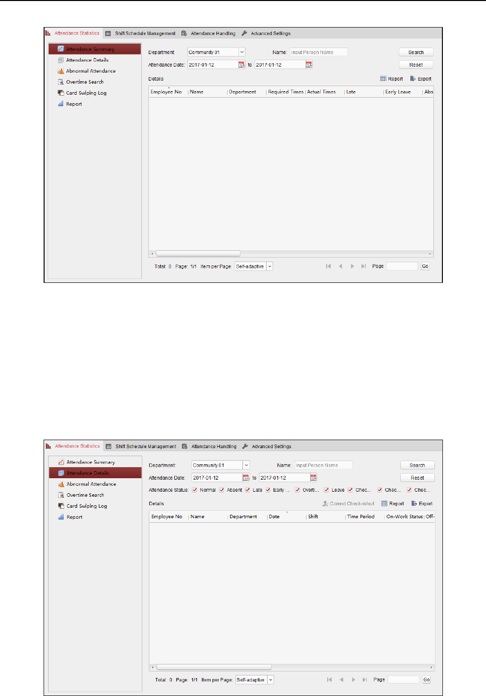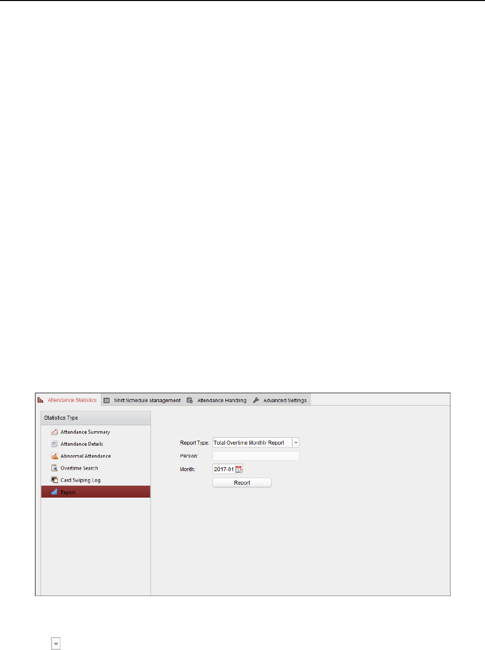 In the Attendance Statistics page, click Report item on the left panel to enter the Report interface.