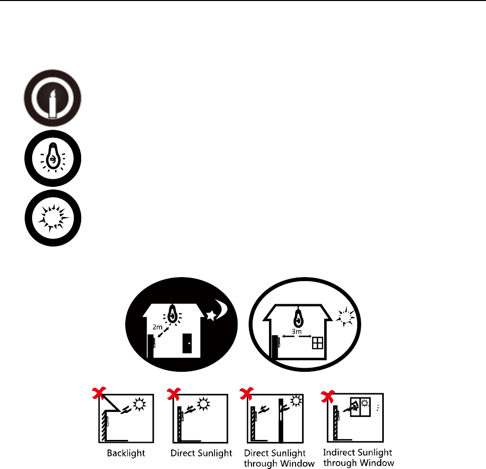 2. Install the device indoors, at least 2 meters away from the light, and at least 3 meters away