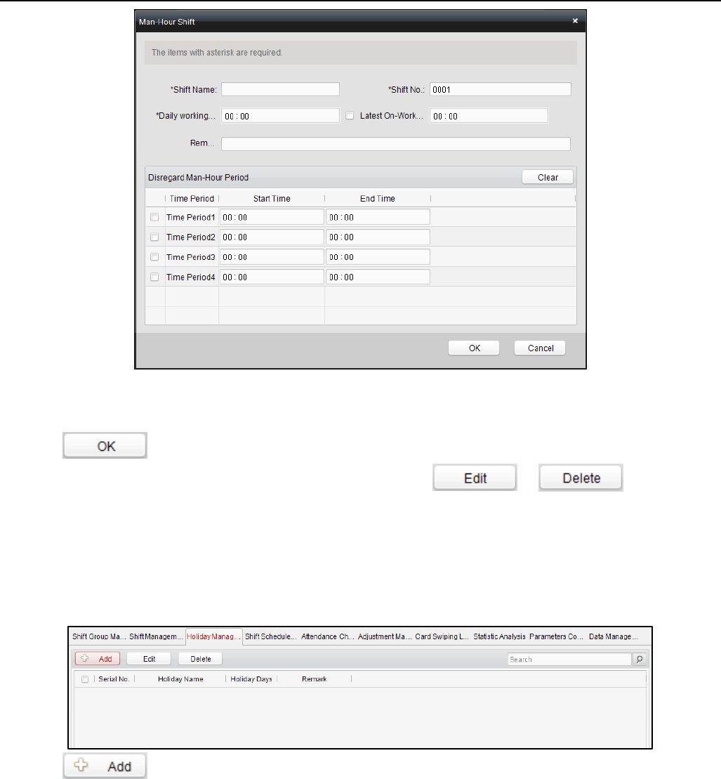 Man-Hour Shift Table: Set the Man-Hour Shift working duration. If set the Latest On-Work