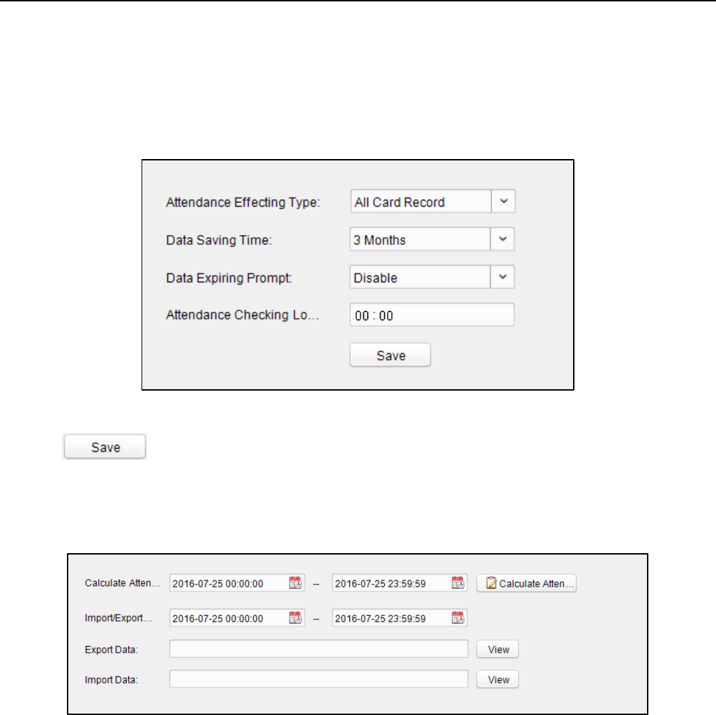 Attendance Report Table: Enter the start time and the end time to calculate the user