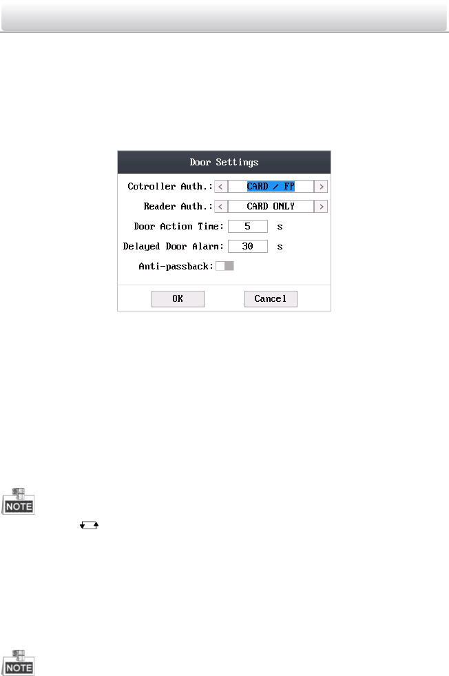 Door Action Time: Set the door action time: 1 ~ 255 s.