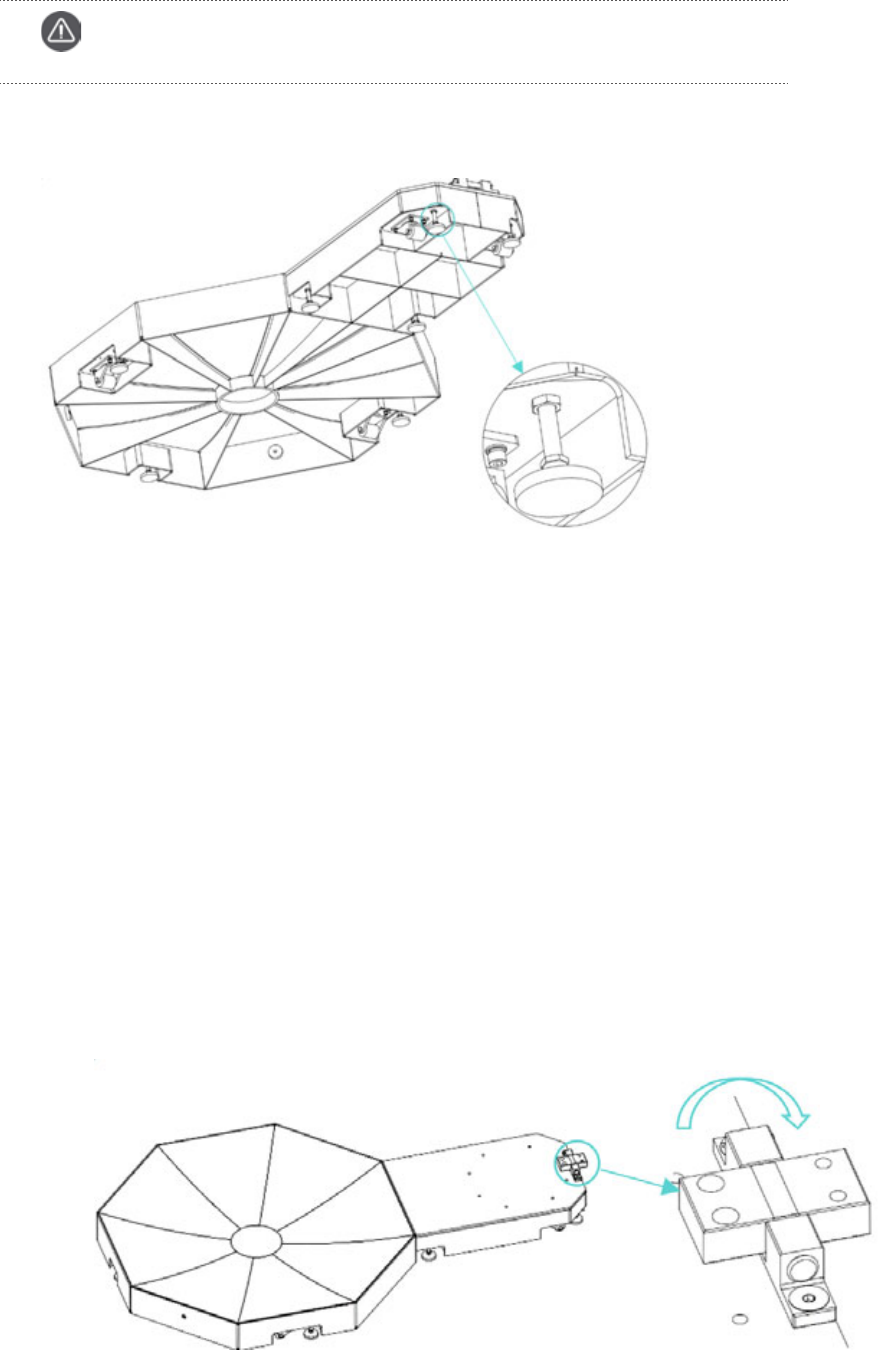 Loosen the base plate holder and adjust the bottom of the holder to make it higher than the wheels; move KAT WALK