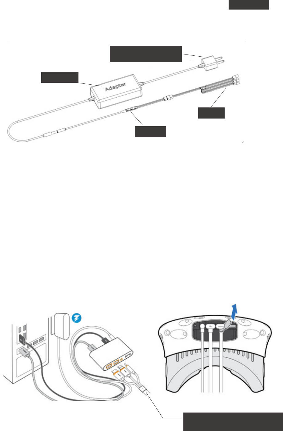 Please note that during the installation, the HTC VIVE three-in-one connecting cable and the grounding cable need