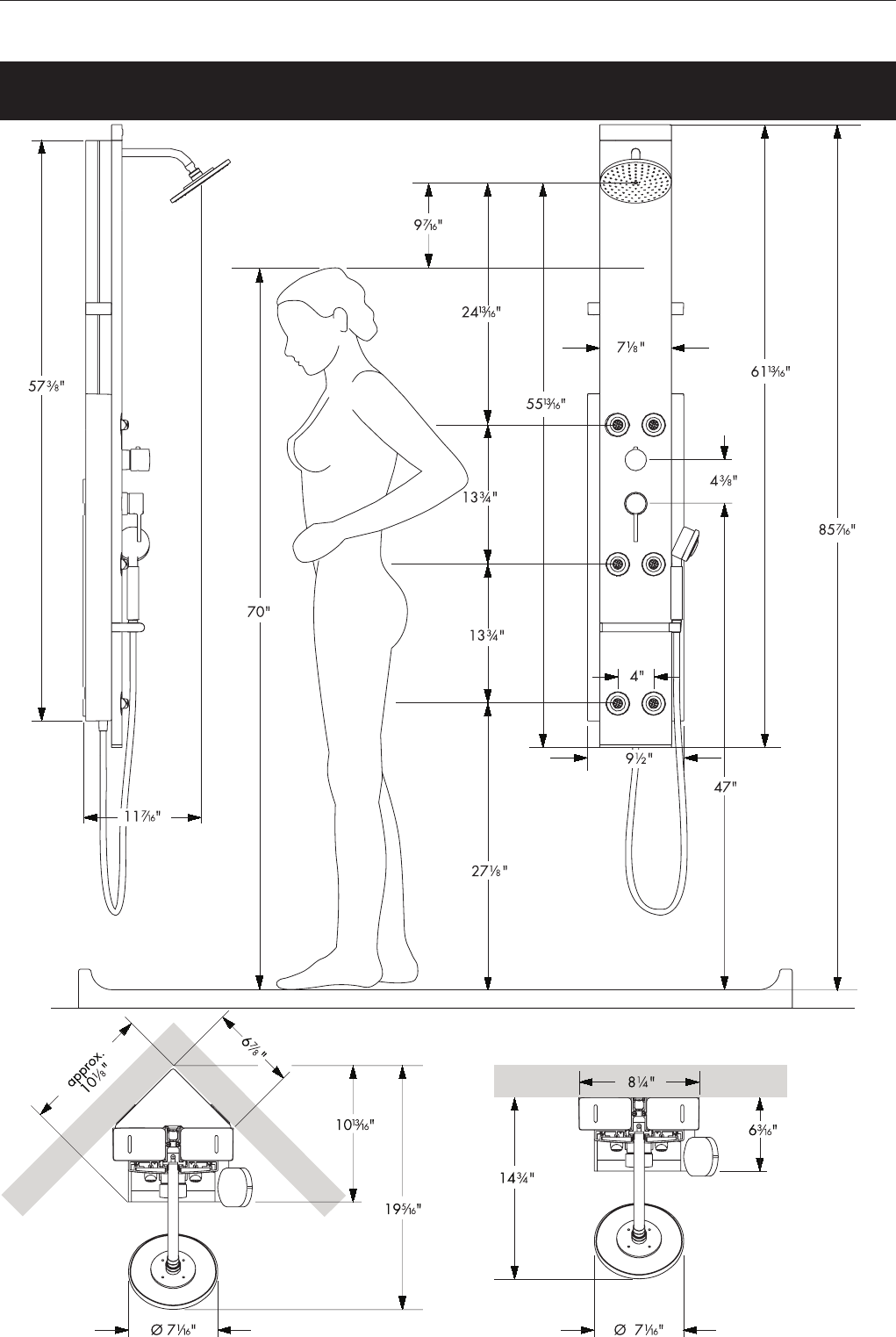 Wall / Corner Installation Dimensions Diagram 4