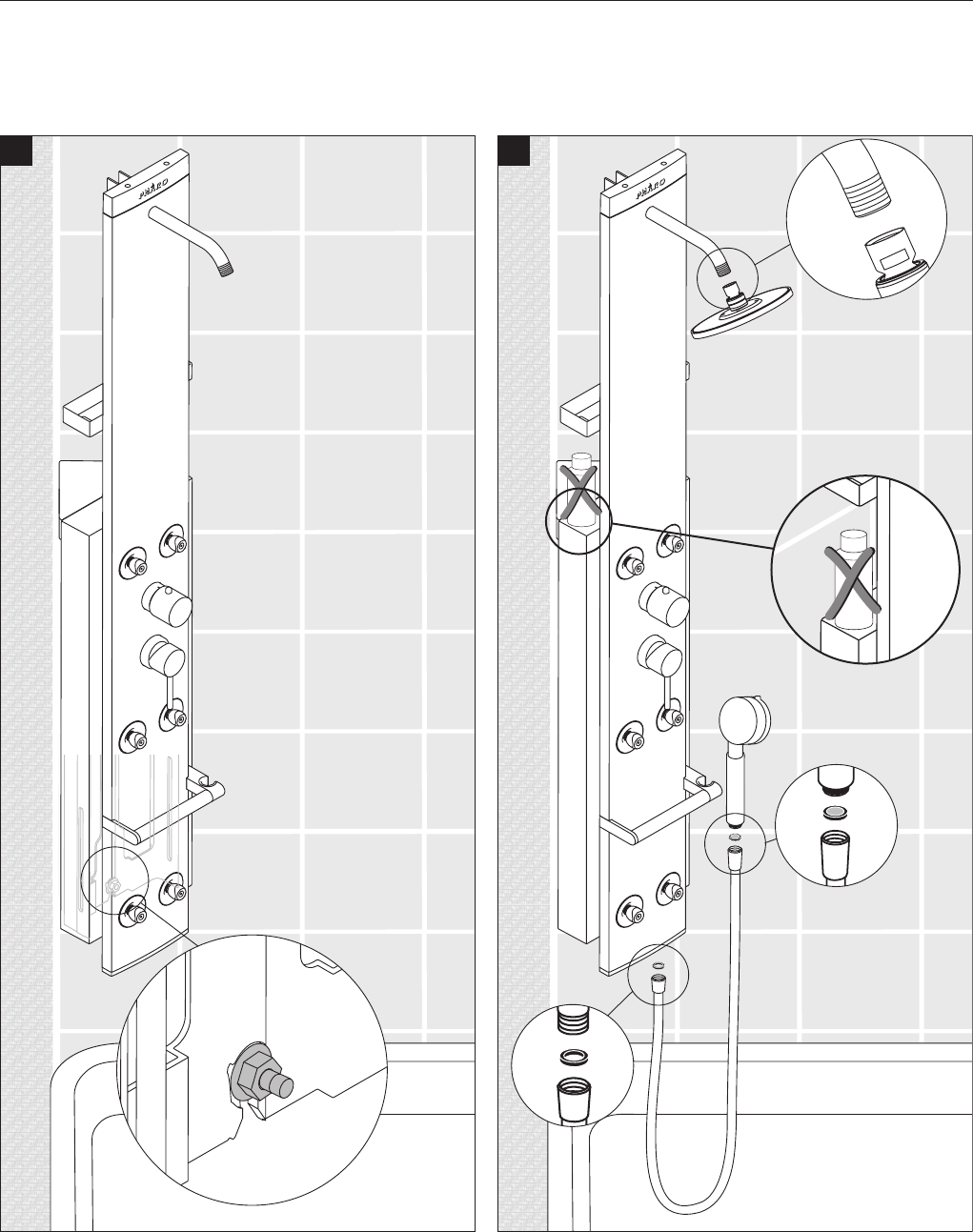 Body showers, 6 jets (2) 3,9 gpm