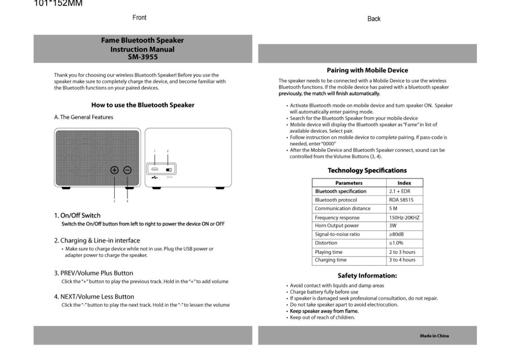 Hantat Technology HB035 Bluetooth Speaker User Manual C8ABD2B3D5D5C6AC