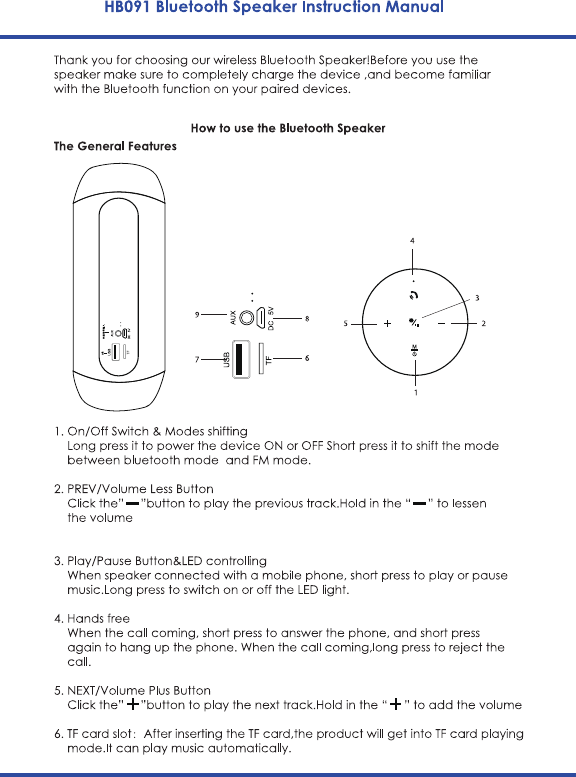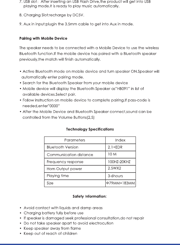 Hantat Technology HB091 Bluetooth Speaker User Manual 1508052 HB091