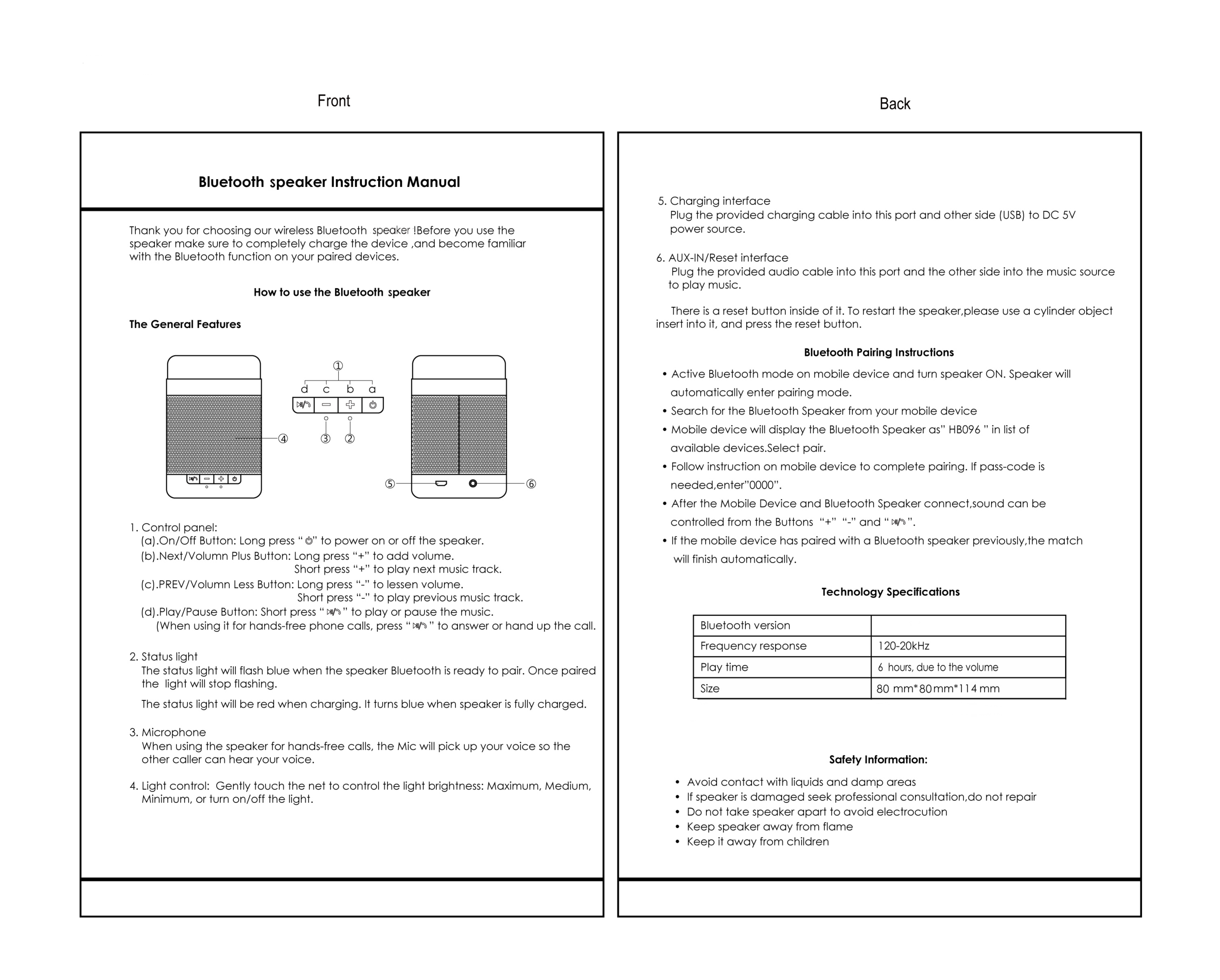 Hantat Technology HB096 Bluetooth Speaker User Manual