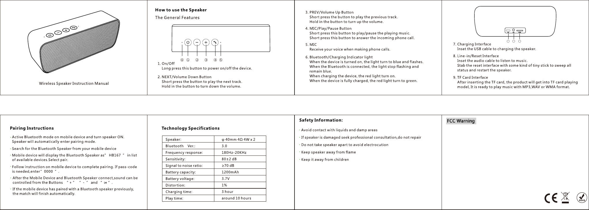 Hantat Technology HB167 Bluetooth Speaker User Manual