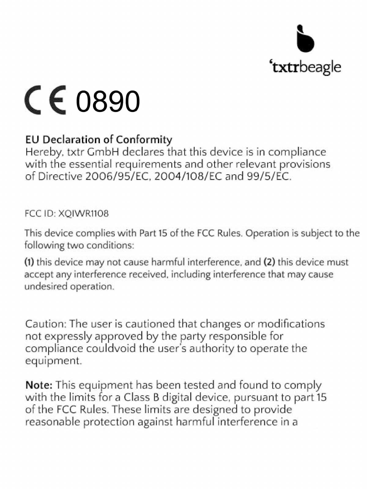 Hanwang Technology WR1108 txtr beagle User Manual XQIWR1108