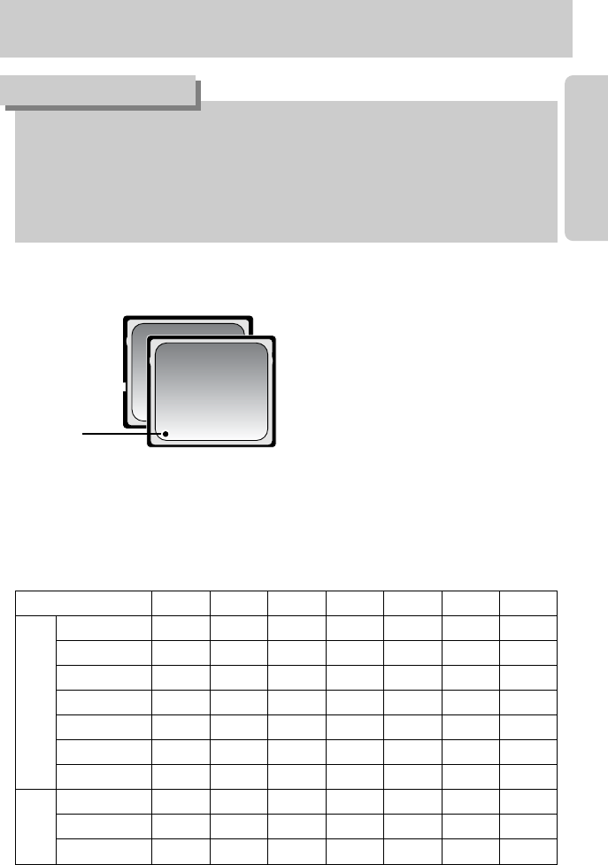 ■When using a 64MB memory, the specified shooting capacity will be as follows.