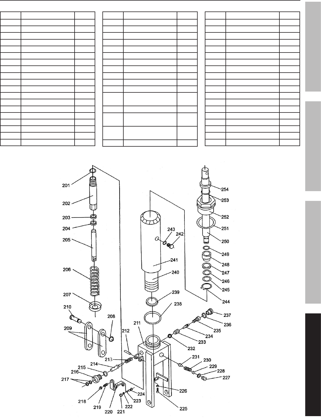 Table Parts List and Assembly Diagram