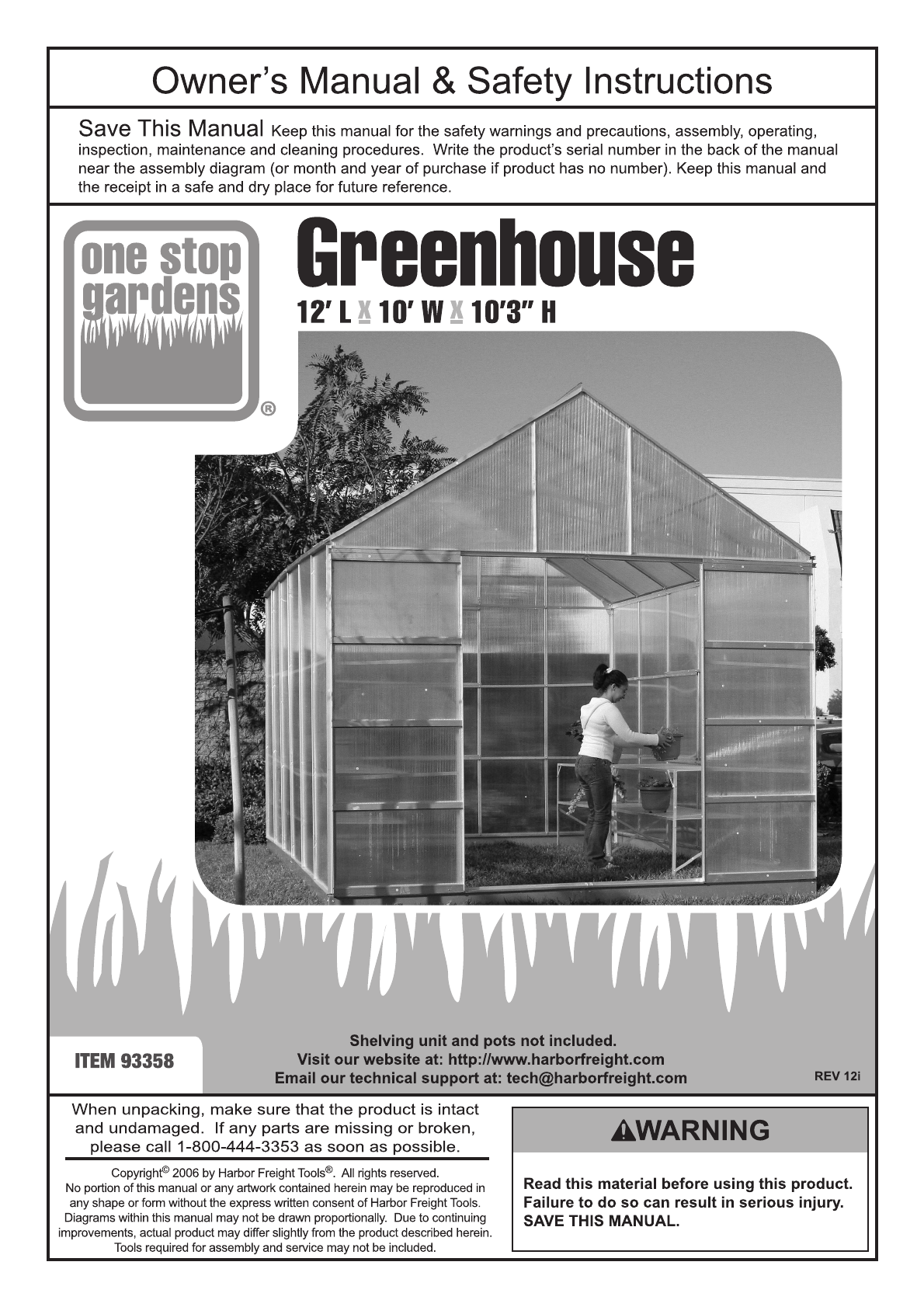 Harbor Freight Tools cannot be held responsible for personal injury, damage to the greenhouse,