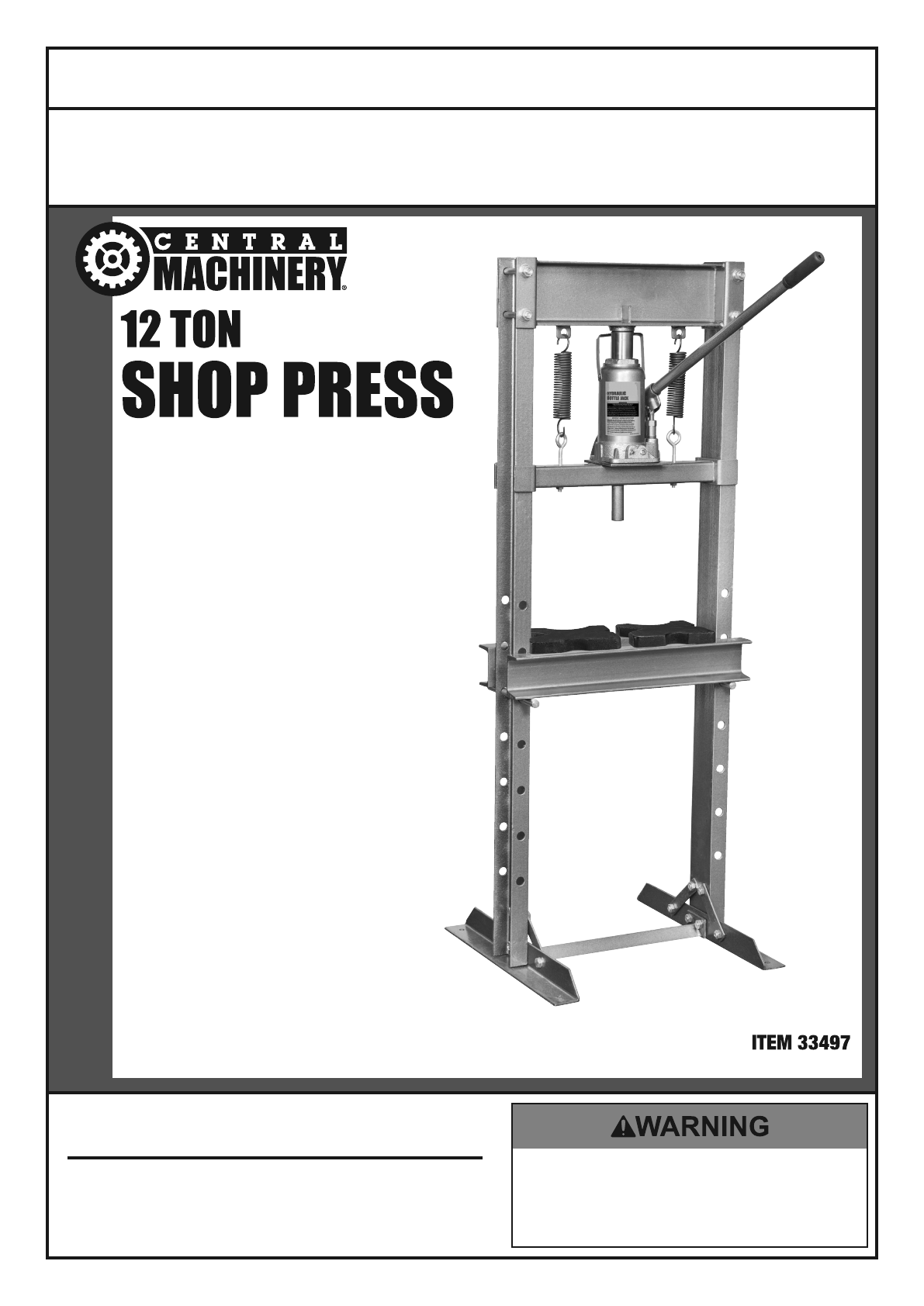 Manual for the 33497 12 ton Shop Press 33497 12 Ton Shop Press