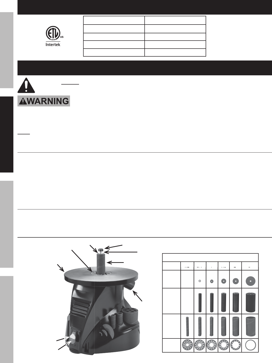 Manual for the 69257 14 Oscillating Spindle Sander 69257 14 In. Oscillating Spindle Sander