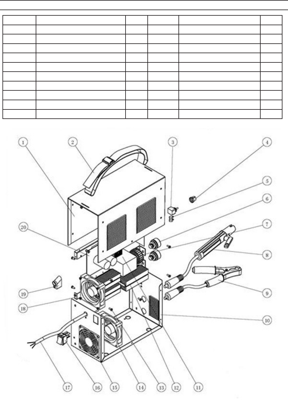 WELDER PARTS LIST AND ASSEMBLY DIAGRAM