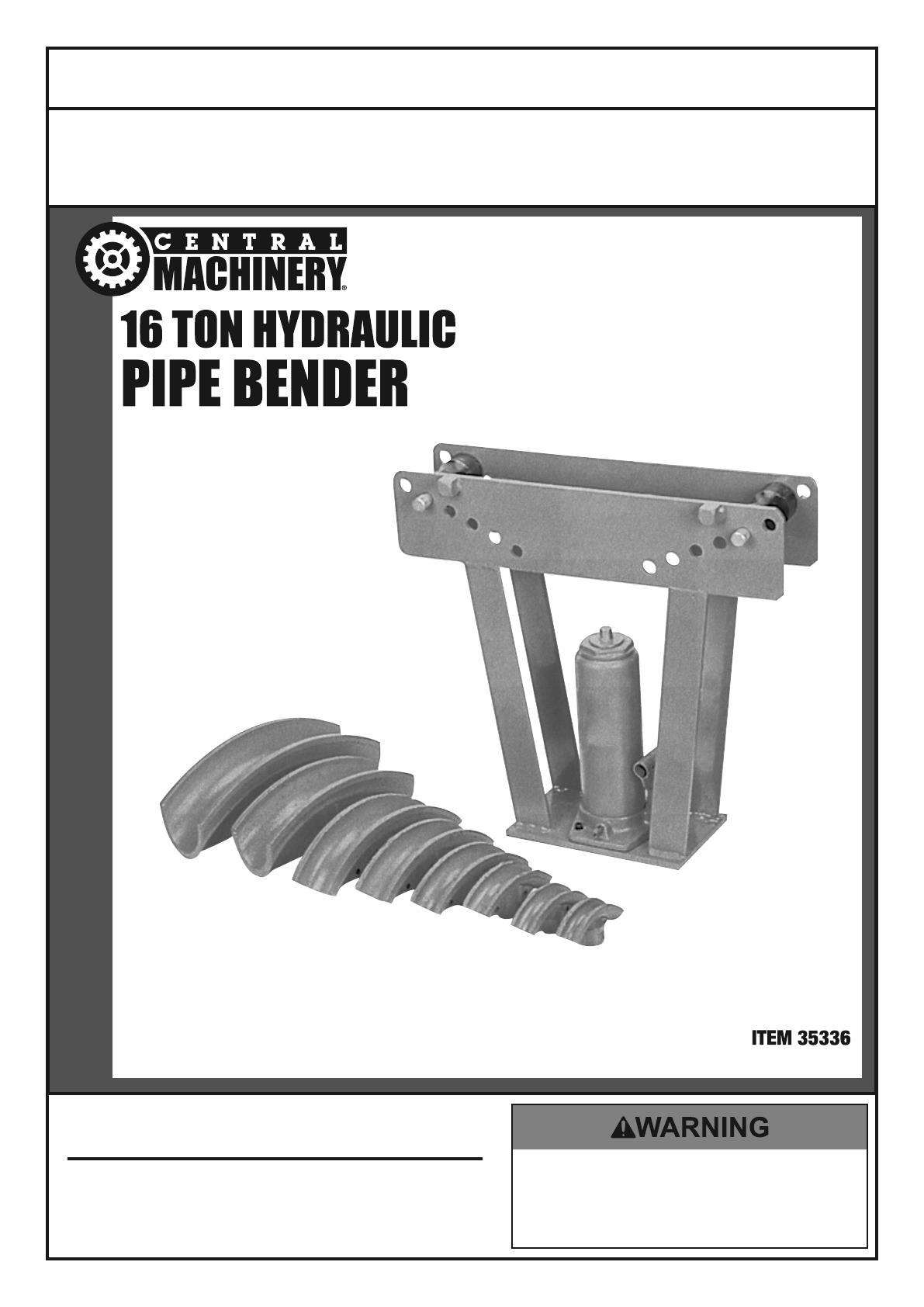 Harbor Freight 16 Ton Hydraulic Heavy Duty Pipe Bender Product Manual