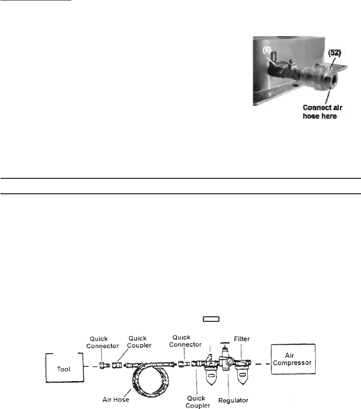 10. Disconnect air line. Unplug air line from the tool when not in use. Only