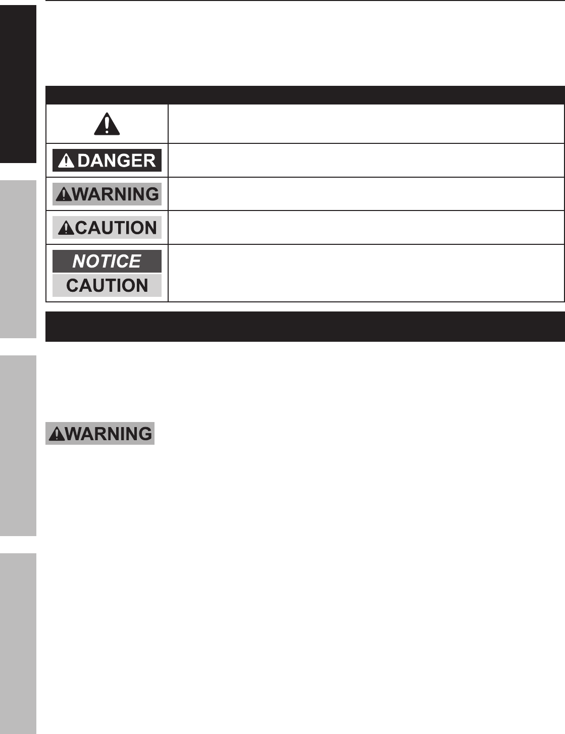 WARNING SYMBOLS AND DEFINITIONS
