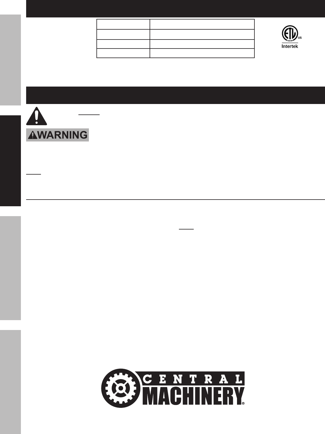 Page 2 For technical questions, please call 1-800-444-3353. Item 61162