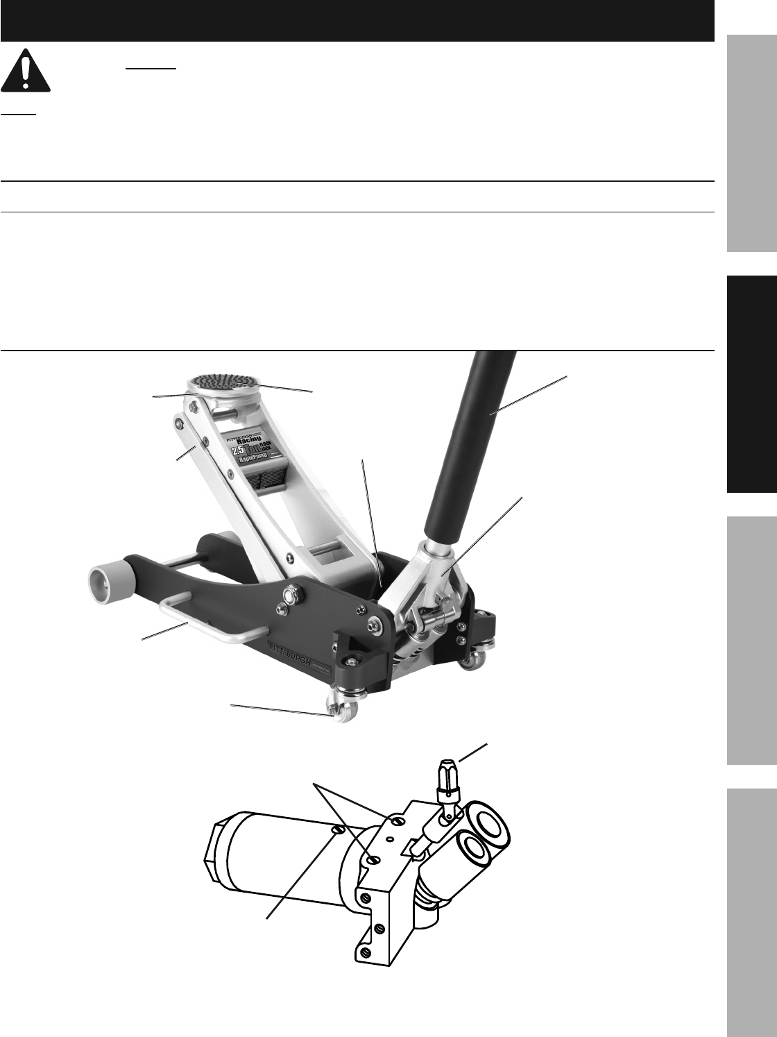 Manual for the 62309 2.5 Ton Aluminum Racing Floor Jack with Rapid Pump® 62309 2.5 Ton Aluminum Racing Floor Jack with Rapid Pump®