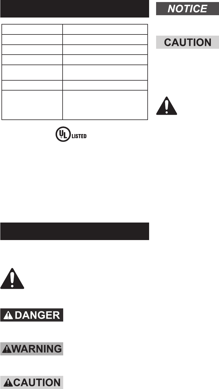 Electrical Input 120 V~ / 60 Hz / 11 A (Rated)