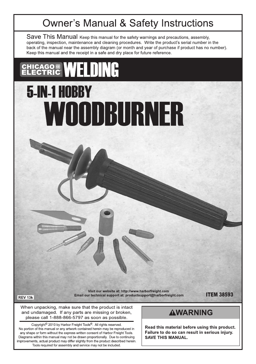Harbor Freight 30 Watt 5 In 1 Hobby Woodburner Product Manual