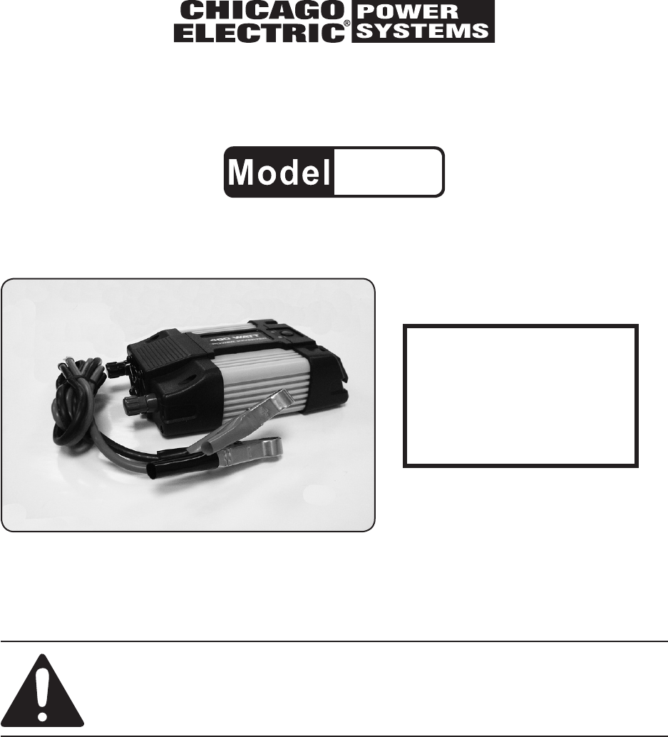 Manual for the 66814 400 Watt Continuous/800 Watt Peak Power Inverter 66814 400 Watt Continuous/800 Watt Peak Power Inverter
