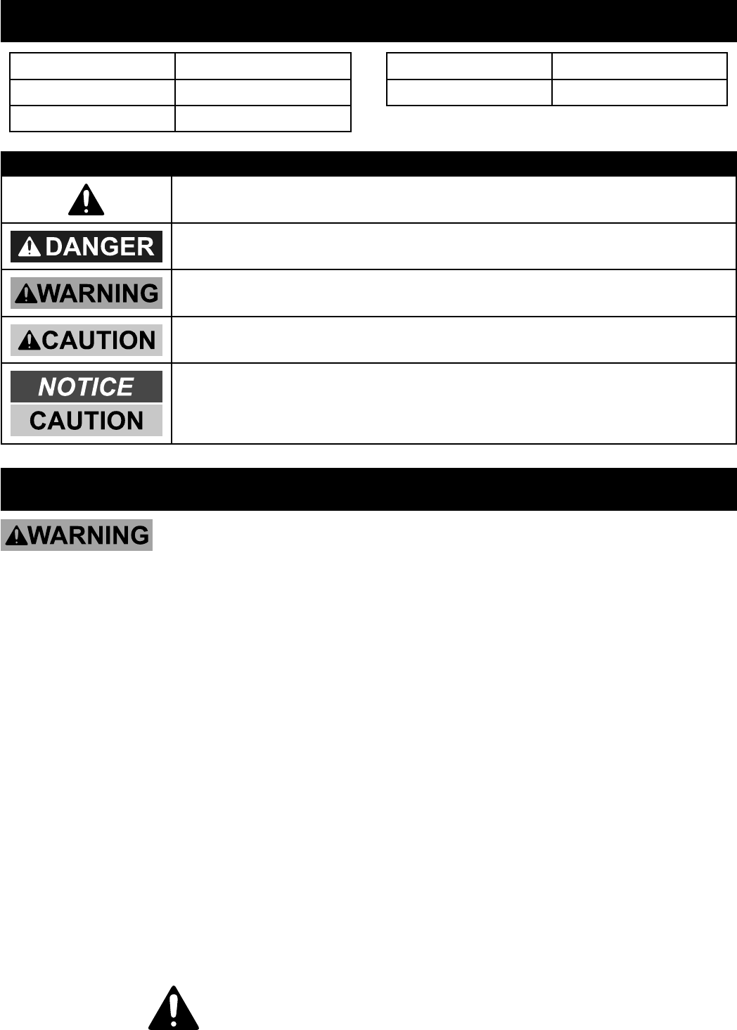 WARNING SYMBOLS AND DEFINITIONS