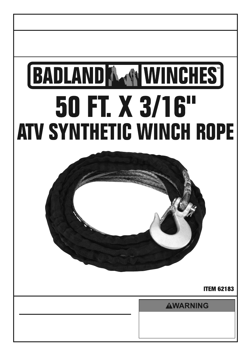 Harbor Freight 50 Ft X 3 16 In Atv Synthetic Winch Rope Product Manual