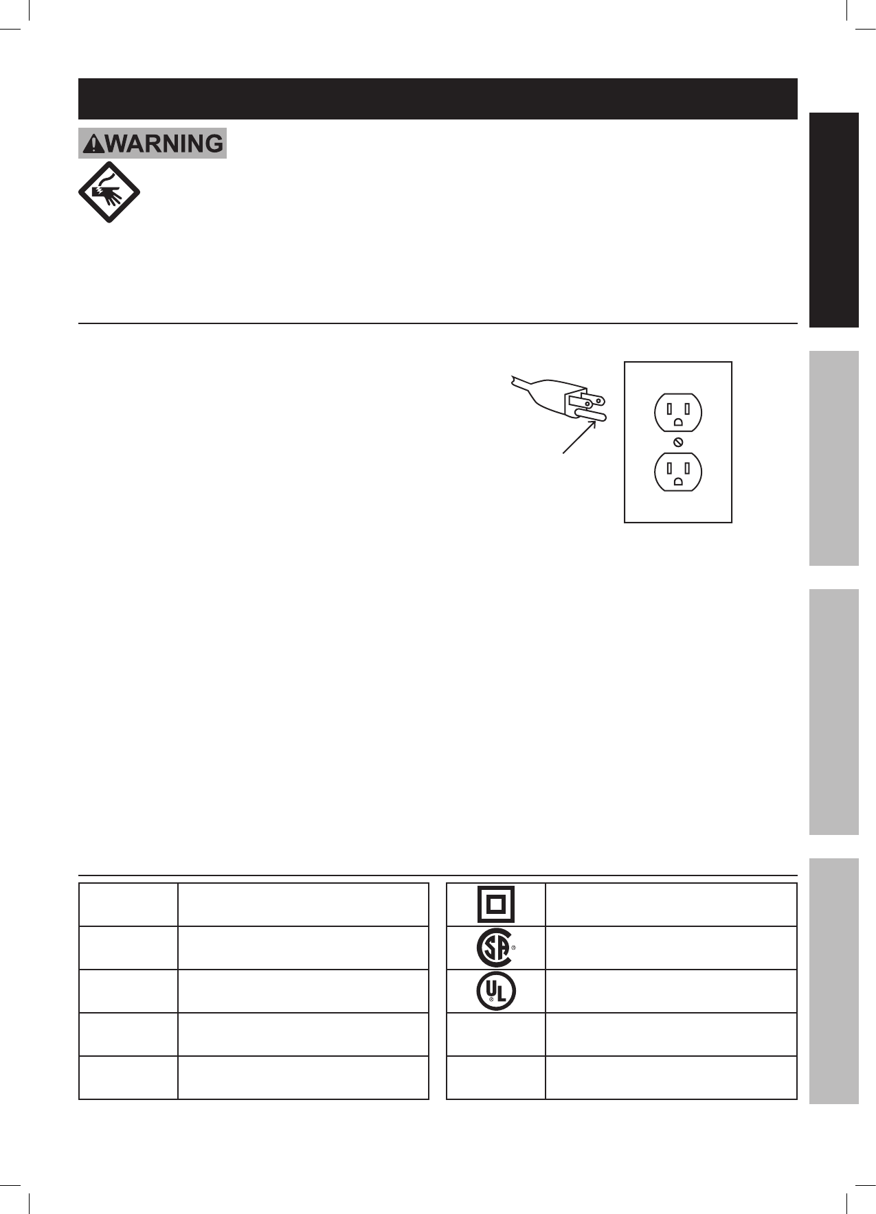 Failure to follow the warnings and instructions may result in electric shock, fire and/or serious injury.