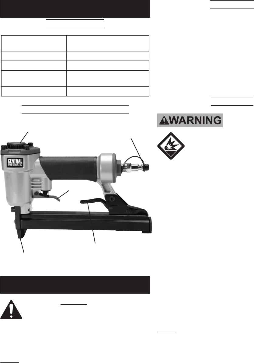 Manual for the 68029 20 Gauge Wide Crown Air Stapler 68029 20 Gauge Wide Crown Stapler