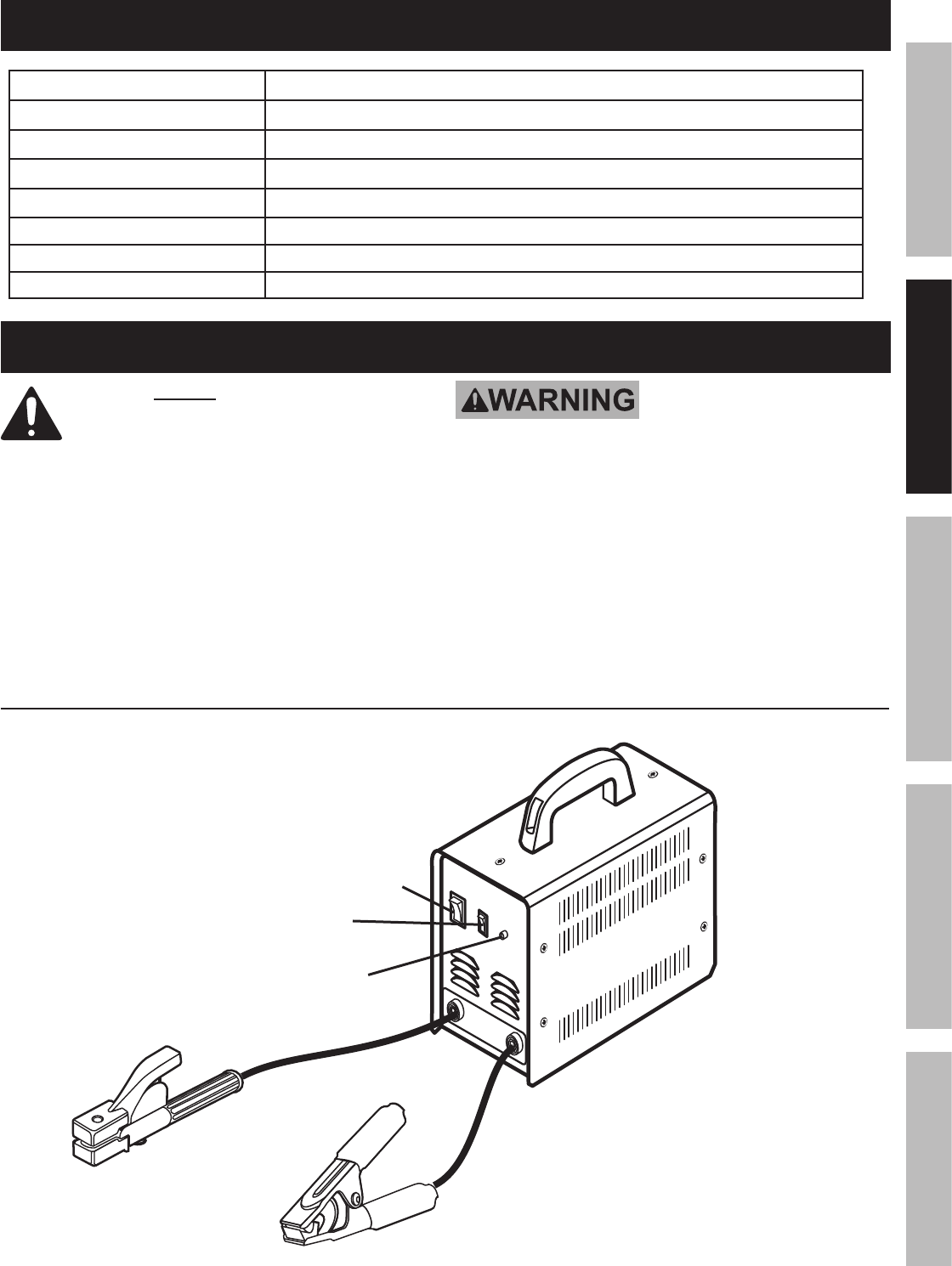 • Electrode diameter ranges: 1/16"-3/32"